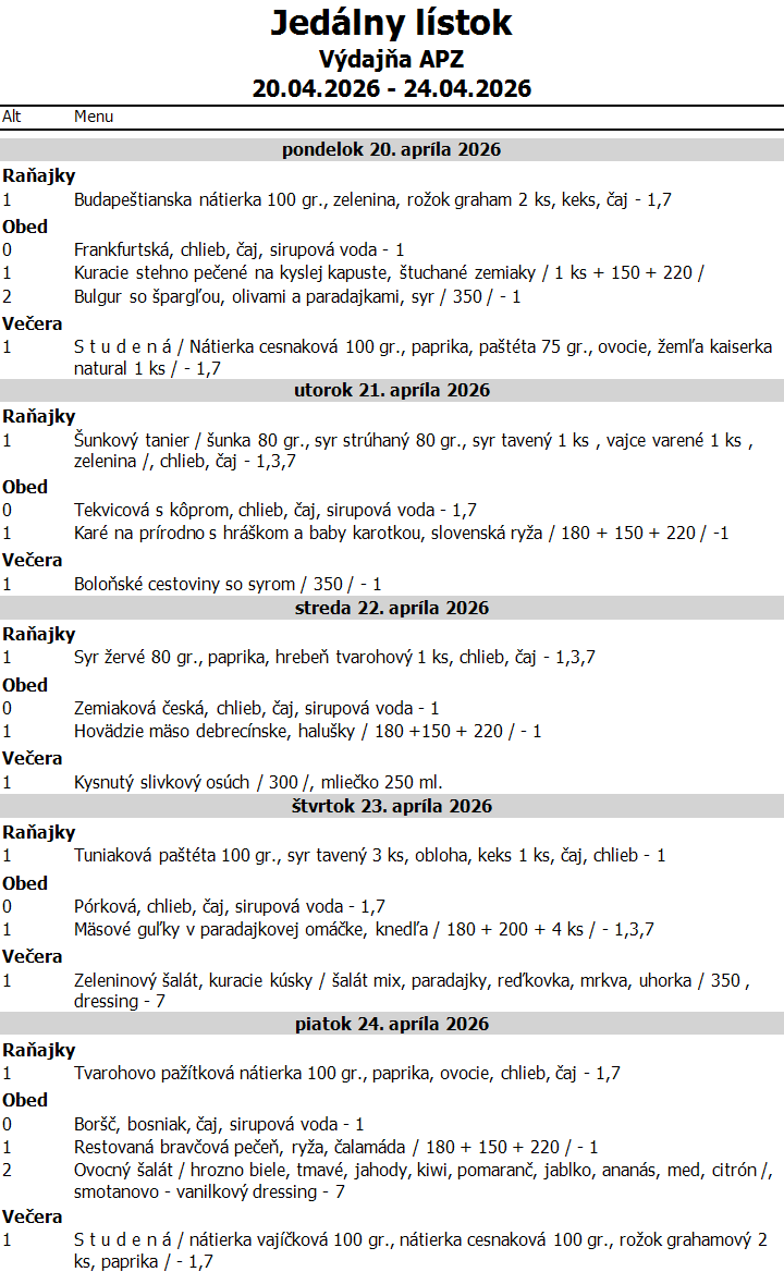 Jedálný lístok