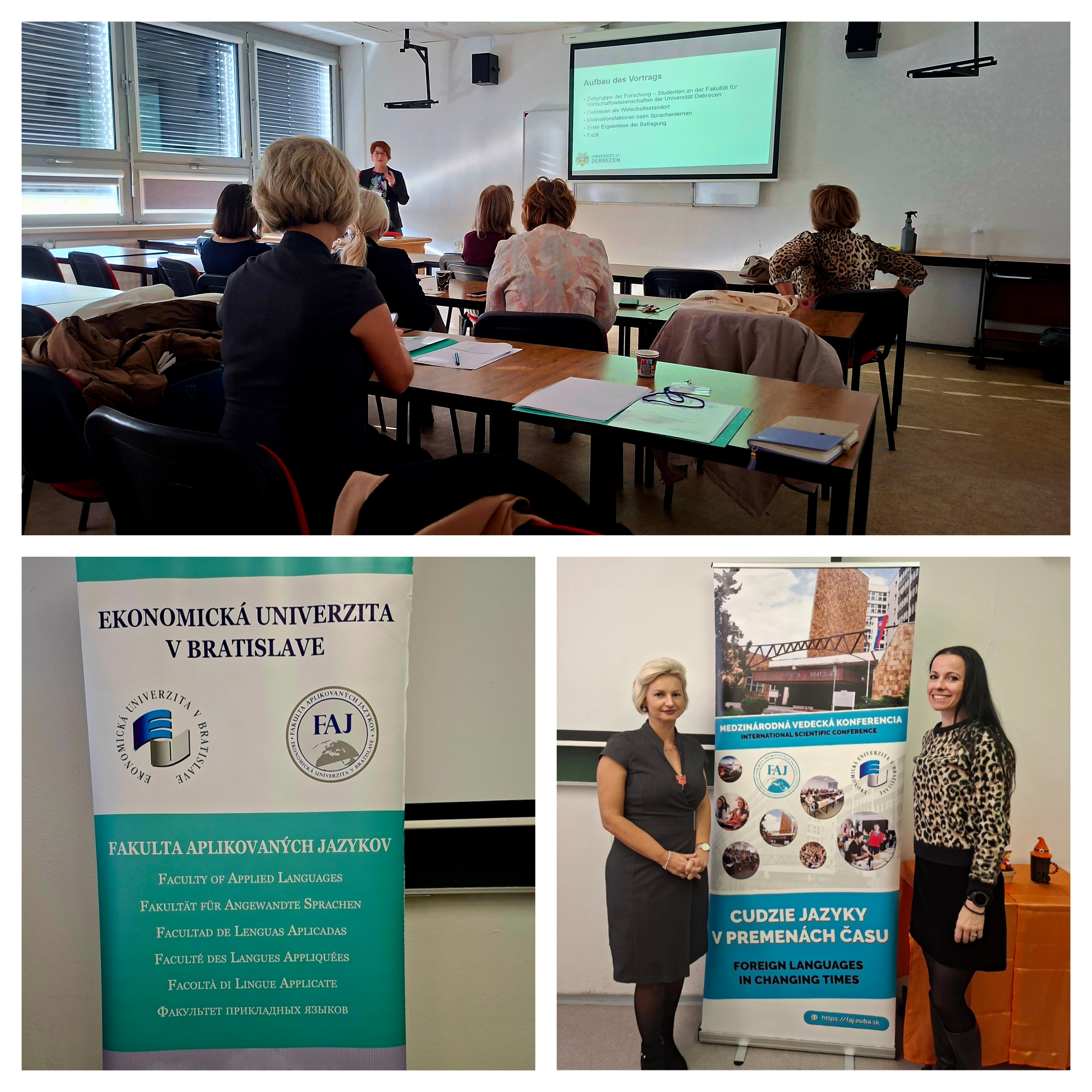 Dňa 7.11. 2025 sa na pôde Ekonomickej univerzity v Bratislave už tradične konala medzinárodná vedecká konferencia Cudzie jazyky v premenách času. Za Katedru jazykov sa v nemeckej sekcii konferencie zúčastnili vedúca katedry Mgr. Blanka Déneši, MBA a odborná asistentka kpt. Mgr. Katarína Zimmermannová, PhD.