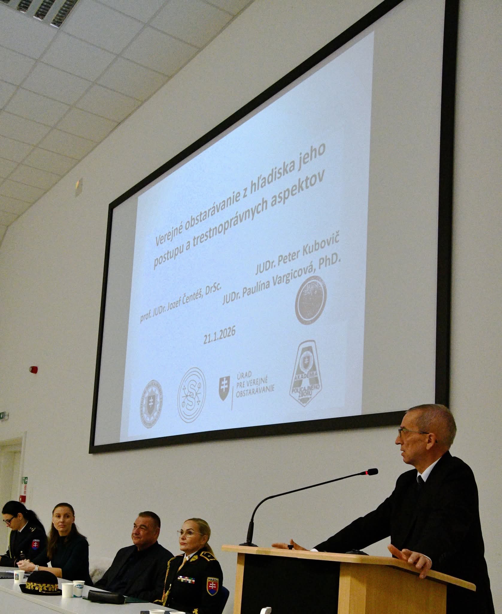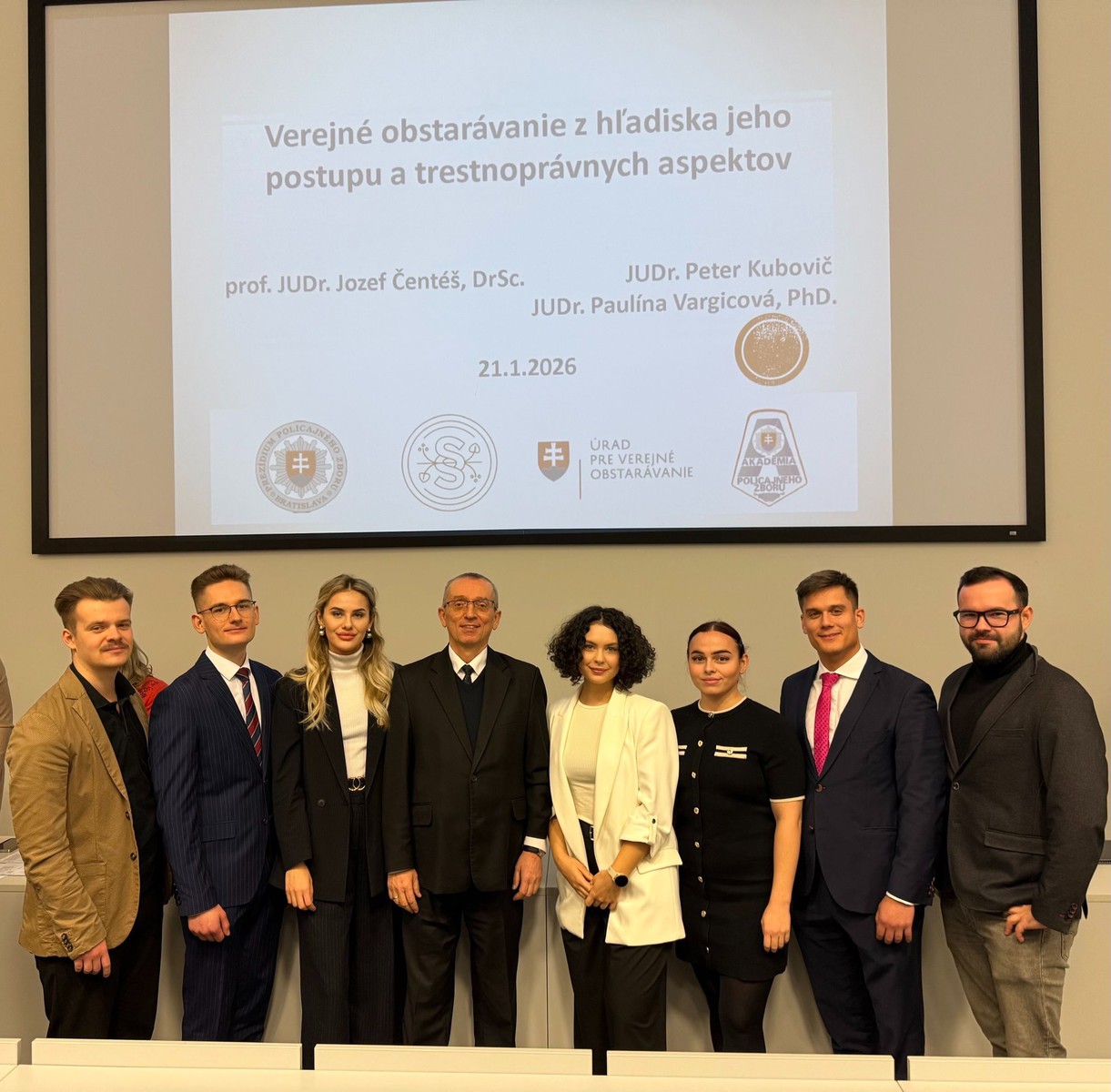 Na pôde Akadémie Policajného zboru v Bratislave sa konal dňa 21.01.2026 odborný seminár na tému „Verejné obstarávanie z hľadiska jeho postupu a trestnoprávnych aspektov“, ktorý bol určený pre vyšetrovateľov Policajného zboru z celého Slovenska.